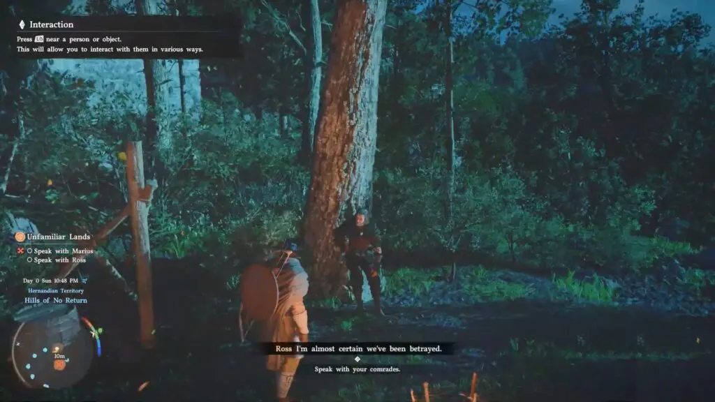 Next, head toward the nearby graves, where Ross is resting against a tree. When you talk to him, he shares his concern, saying that he believes someone may have betrayed them.
