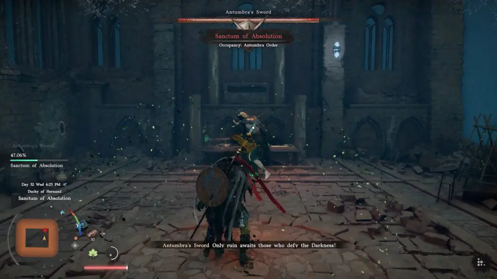 Head to the Sanctum of Absolution and defeat the Antumbra’s Sword Boss. This is one of the toughest fights in the game.