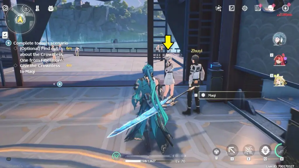 Maqi (NPC) should ask you to bring The Crownless One. Speak with her further to gather additional clues regarding the requirement. She will ask you to speak with Xianchen (NPC)