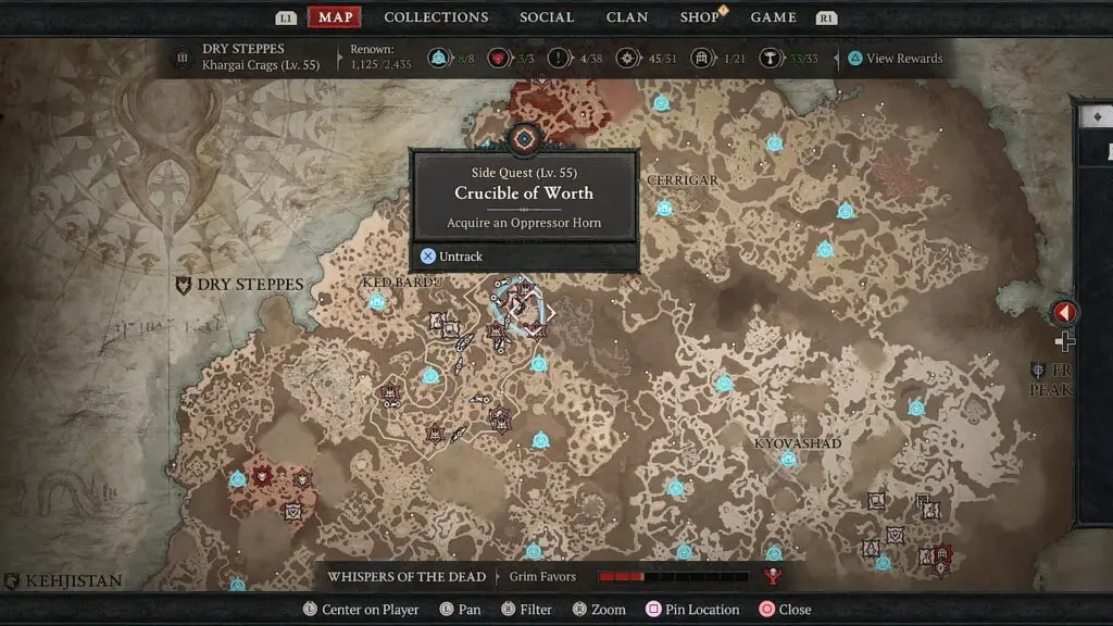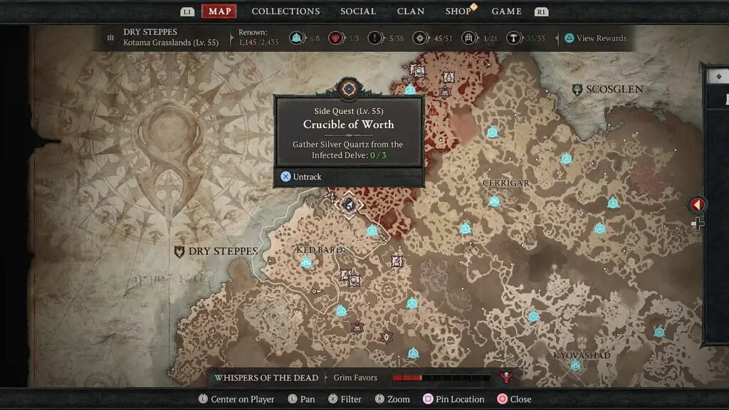 This guide shows the complete walkthrough of the Crucible of Worth side quest in the Diablo 4 game, released on 6th June 2023. You get the quest by talking to Gerti in the Kotama Grasslands area in the Dry Steppes region as shown in the pictures below.