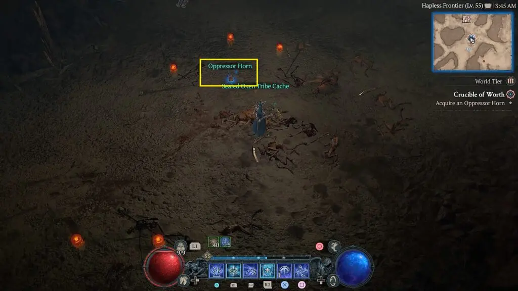 Go to the location shown in the pictures below and defeat the Oppressor there. Then collect the horn it drops.