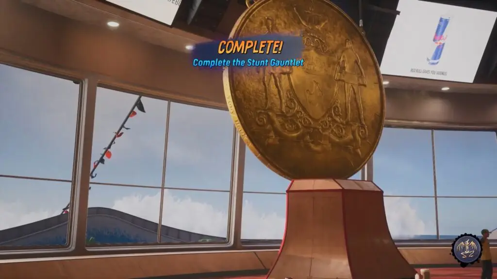 To complete the ‘Complete the Stunt Gauntlet’ goal, the player needs to successfully perform three stunts located in different areas around the ship.