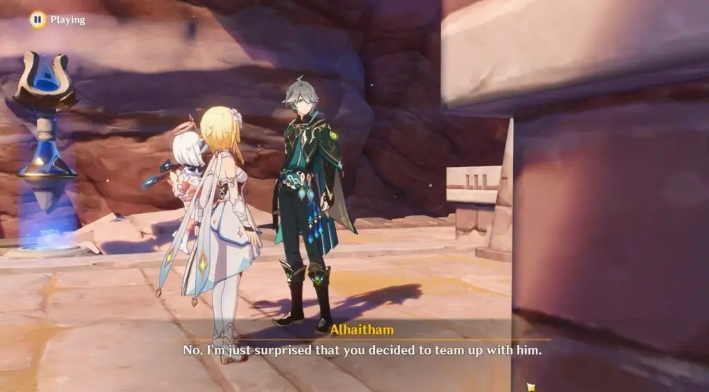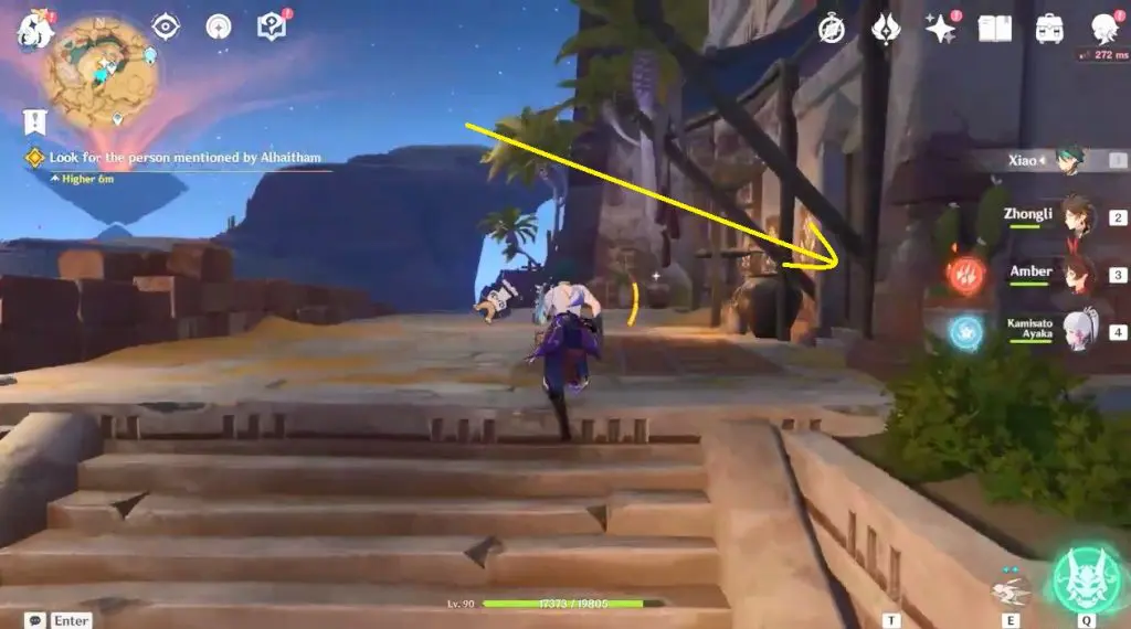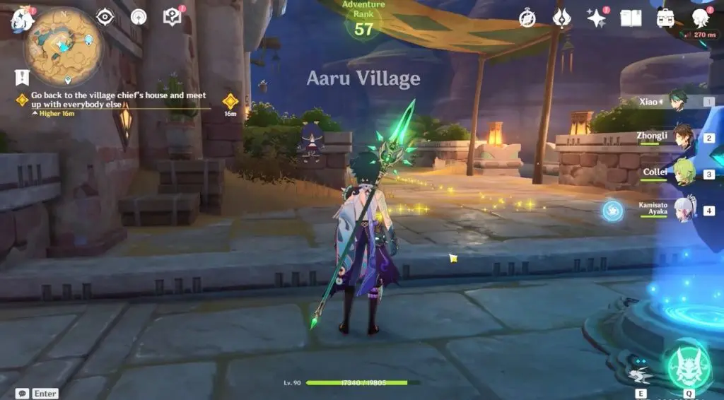 Head to the village chief’s house by following the quest marker. Speak with Alhaitham