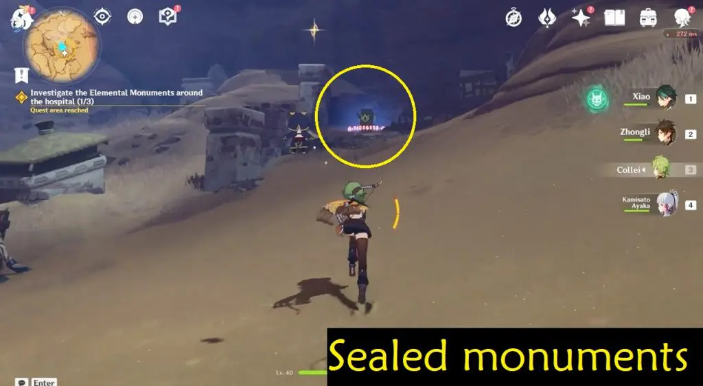 Next, activate three more Dendro monuments located around the hospital. Some of them may be locked, but as you approach them, monsters will spawn. Eliminate the enemies to unlock the monuments and activate them with Dendro.