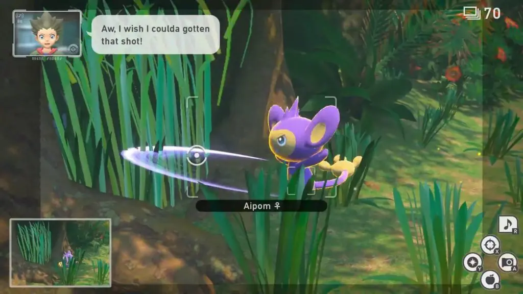 Cutting Moment Request: New Pokemon Snap (How to Guide) Post published:May 4, 2021 Post category:New Pokemon Snap Aipom 4 Star Pose: Cutting Moment Request | New Pokemon Snap Guide Professor Mirror will give you requests to do the ‘Cutting Moment’ request. The request is to snap a 4-star picture of Aipom.Visit Founja Jungle (Day) at research level 3. Enter the alternate swamp path and hit the Aipom there with Illumina Orb. Then take a snap of it cutting the grass (4-star pose) to complete the request. RELATED: New Pokemon Guide & Walkthrough