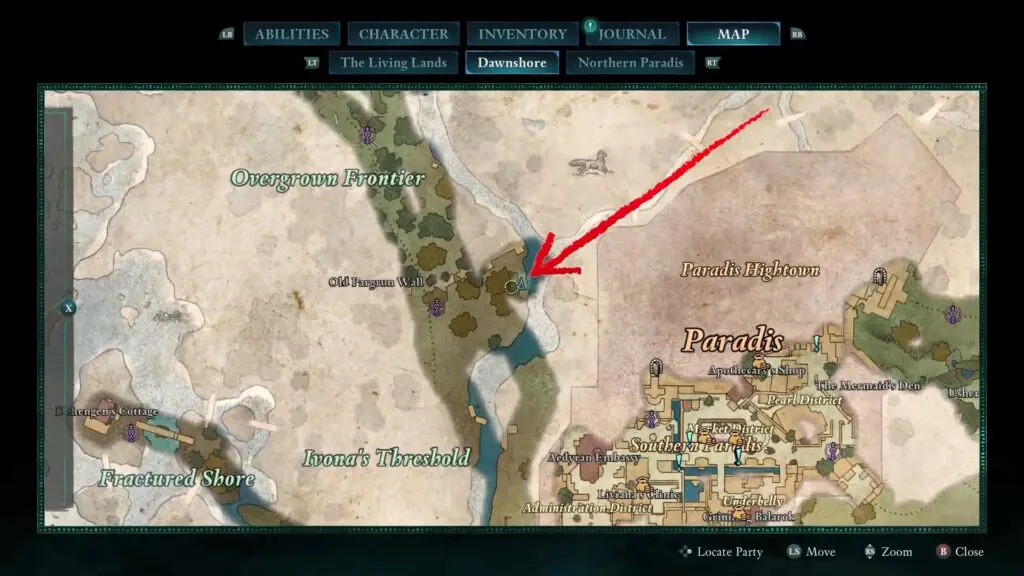 Head to the Old Pargrun Wall as shown on the map. Look for an overhead bridge in the area. Near the shore, dive into the water and swim underwater until you find a small cave. Inside, you’ll discover a chest.