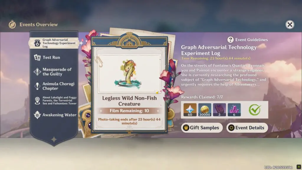 This article will guide you in taking photos of the “Legless Wild Non-Fish Creature“. Basically, Legless Wild Non-Fish Creature is the goal for Day 6 in the Graph Adversarial Technology Experiment Log Event from Genshin Impact 4.2.