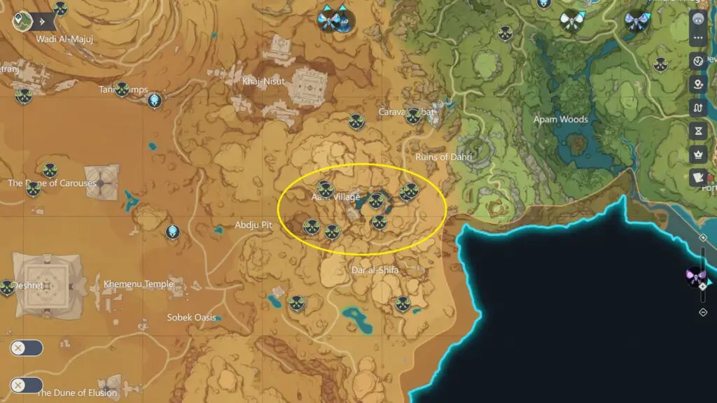 Crystalfly can also be spotted in desert area like around Aaru Village