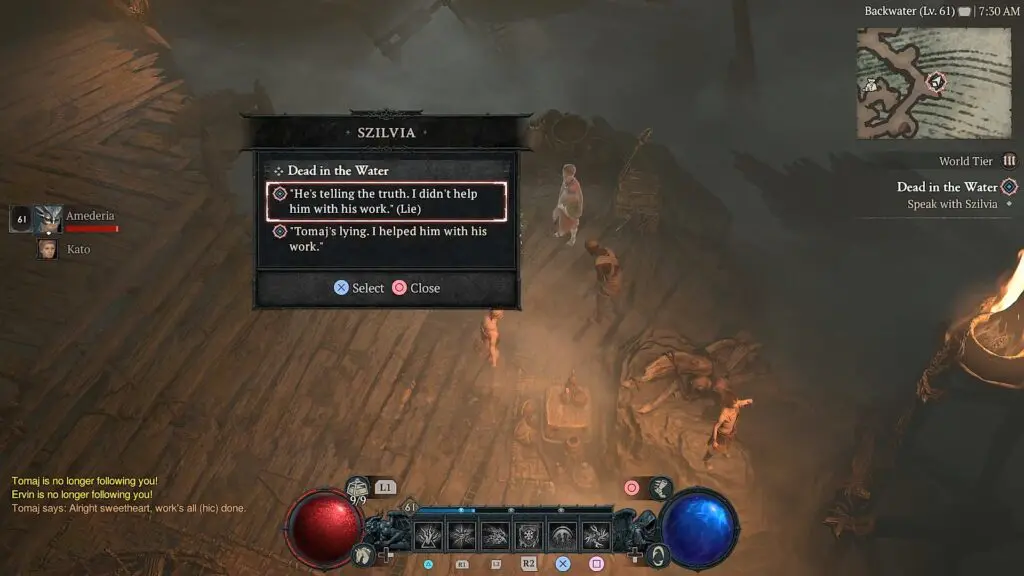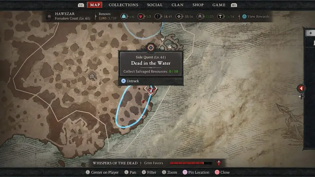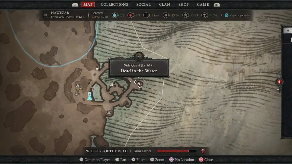 This guide shows the complete walkthrough of the Dead in the Water side quest in the Diablo 4 game, released on 6th June 2023. You get the quest by talking to Tomaj in the Forsaken Coast area in the Hawezar region as shown in the pictures below.