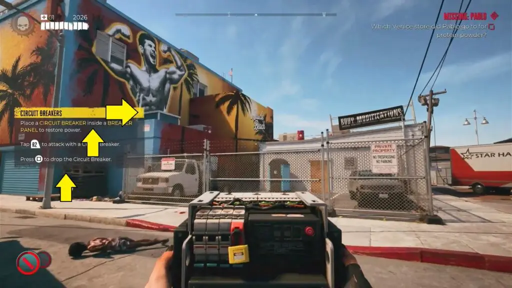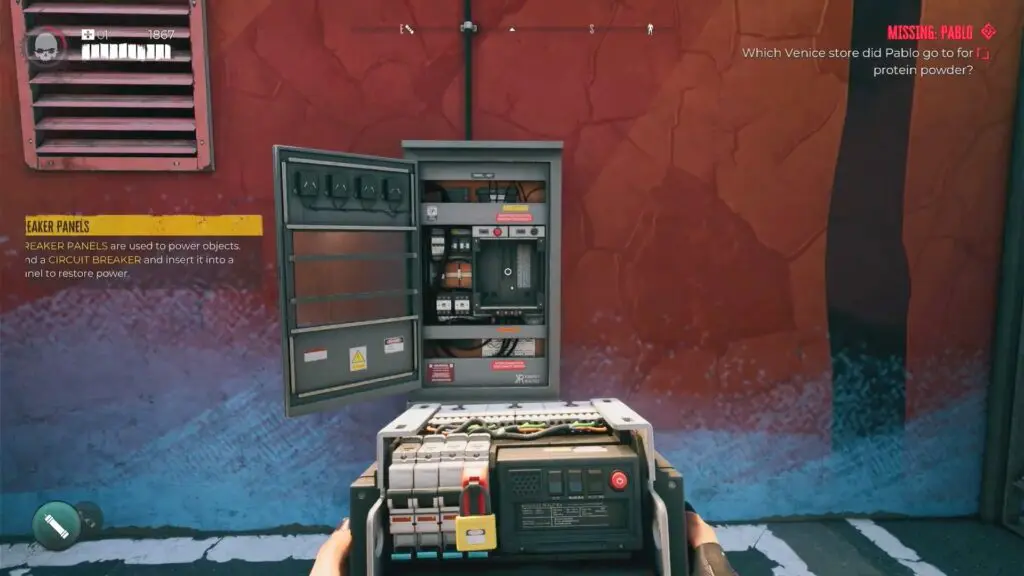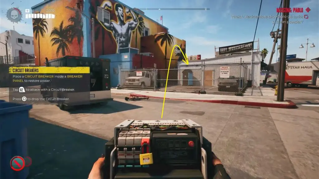 Retrieve the Circuit Breaker from the small office located in the “Venice Autos” shop behind the Muscle Beach Nutrition store.