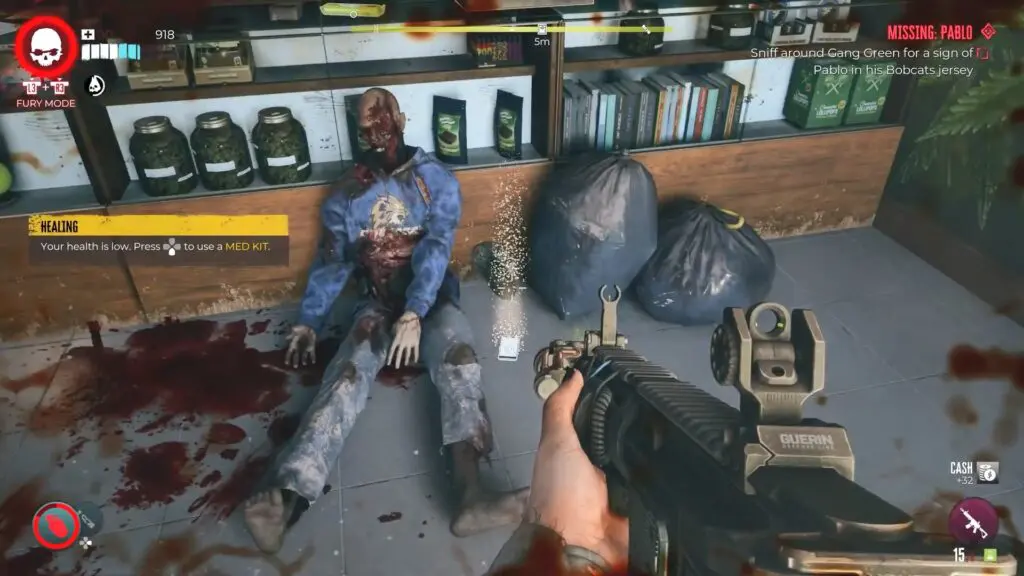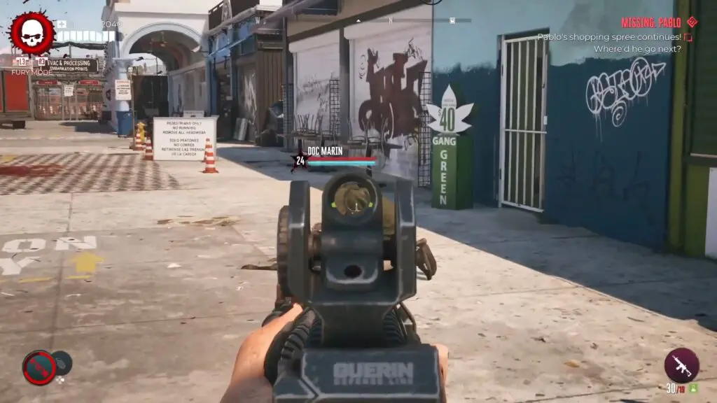 Eliminate the zombie known as Doc Marin and take possession of the Gang Green Gate Key.