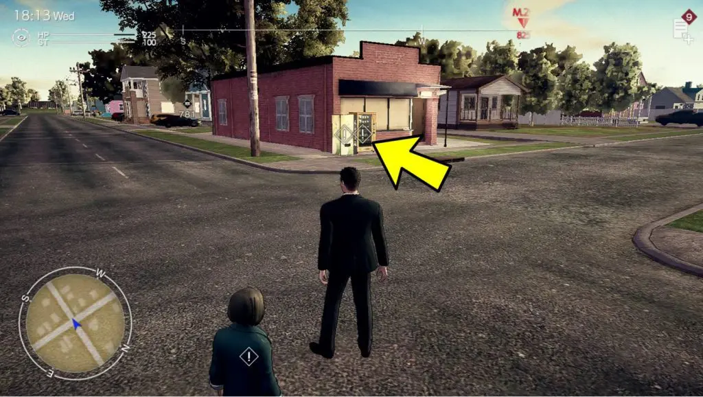 M.30: Buy canned spinach at Erzulie Freda. You won’t ge the canned spinach here. The owner of the store (Mirror) will tell you to get it from a vending machine somewhere in town.
