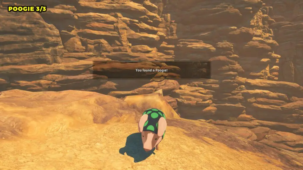 The second Poogie can be found by breaking a wall on the mountain. Use the wind current to glide upward toward the wall, then attack it to break it and head inside to reveal the Poogie.