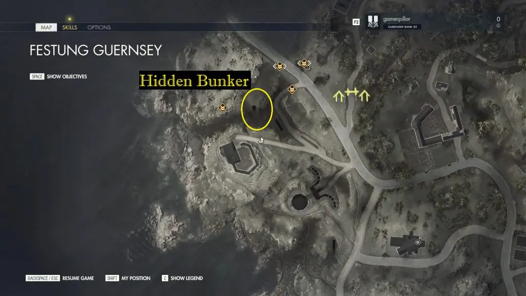 This is marked as the main objective (yellow circle on the map). Head inside the bunker located on the western part of the map.