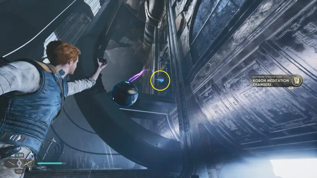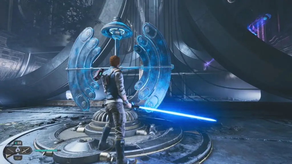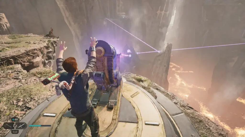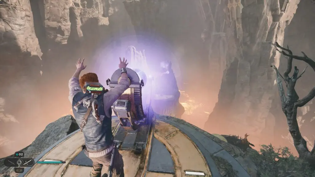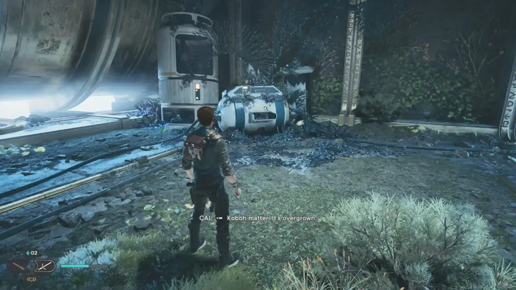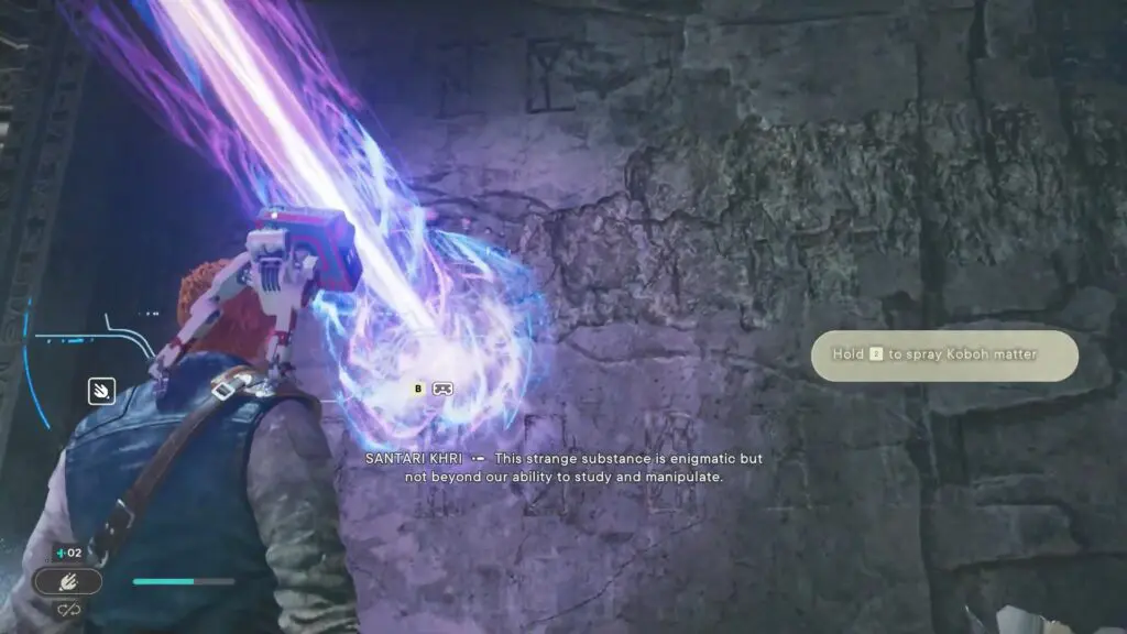 A cut scene will start at this point, during which Cal will tell about the excessive growth of the Koboh Matter. Proceed to the machinery and engage with it to activate the Koboh Grinder enhancement for BD-1. With this upgrade, BD-1 will be able to blast a stream of Koboh Matter anywhere you want it!