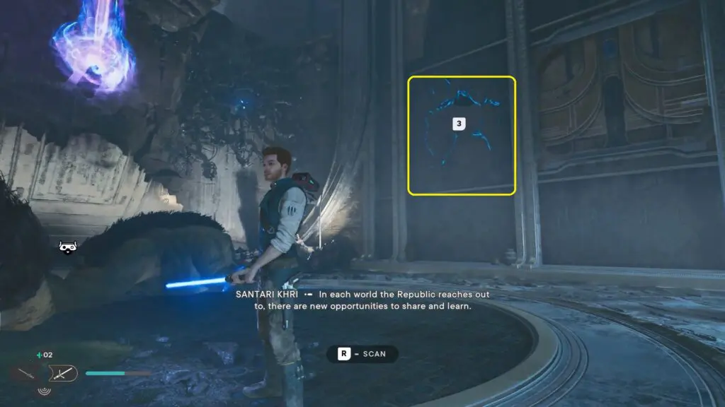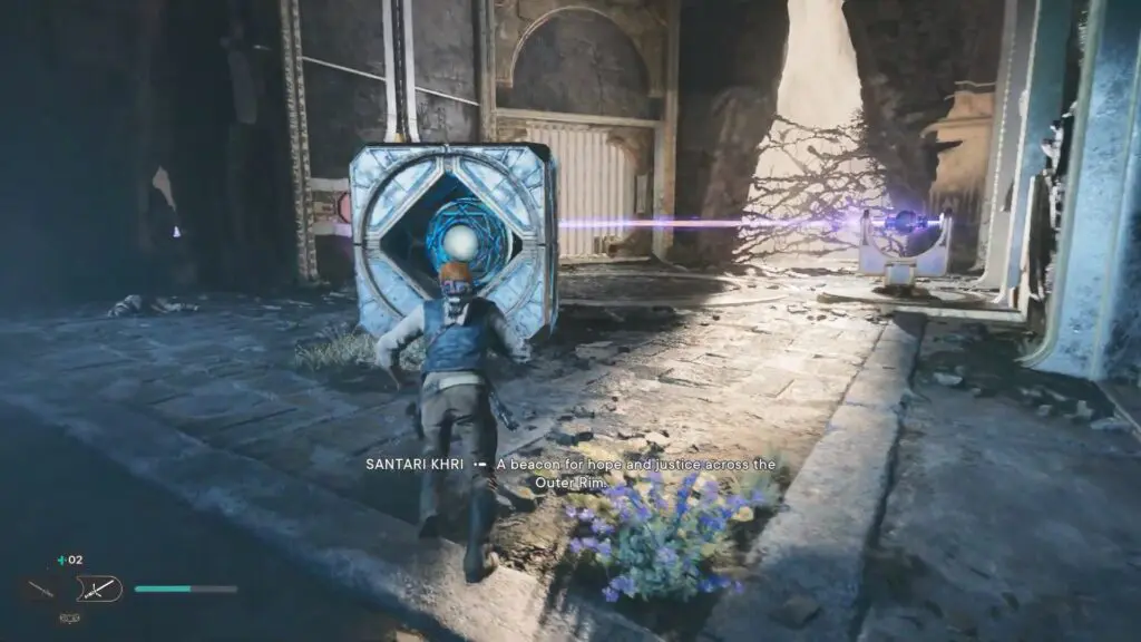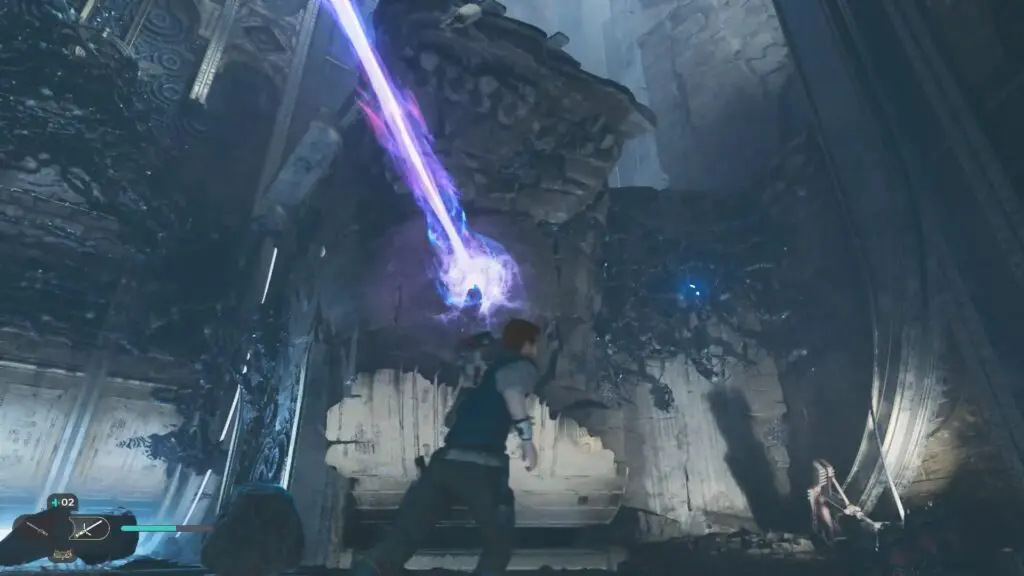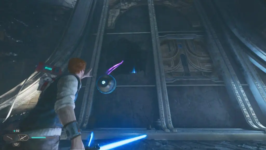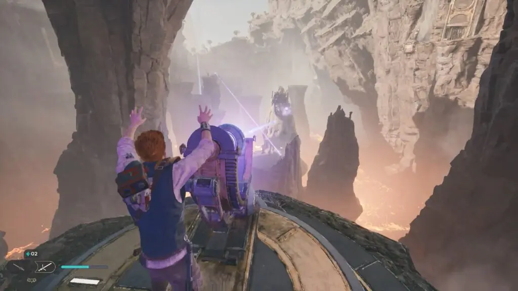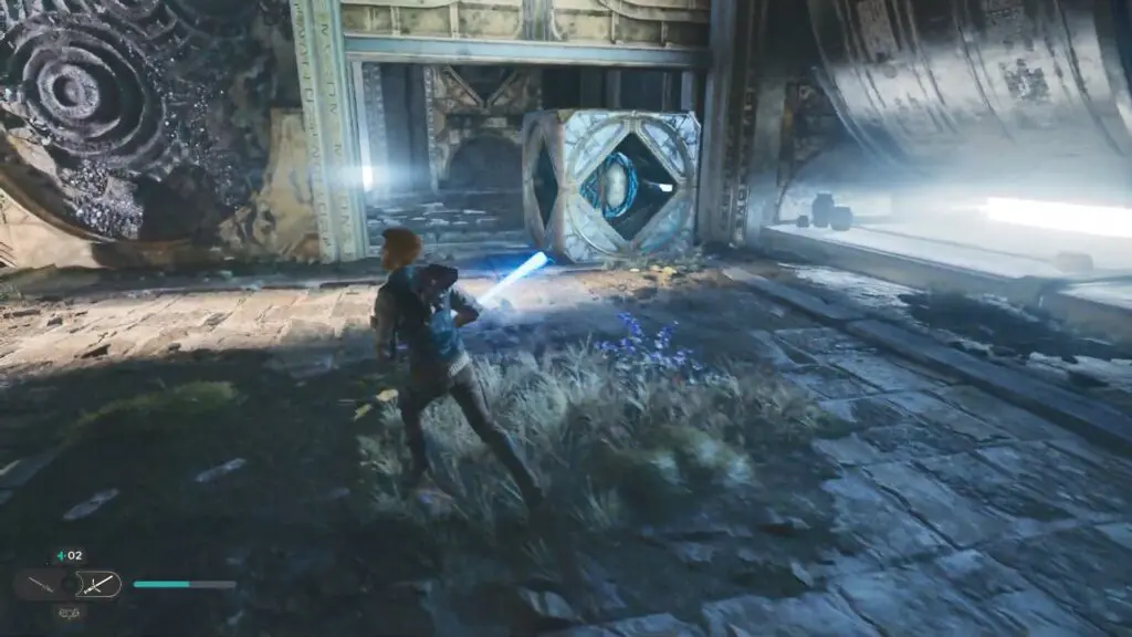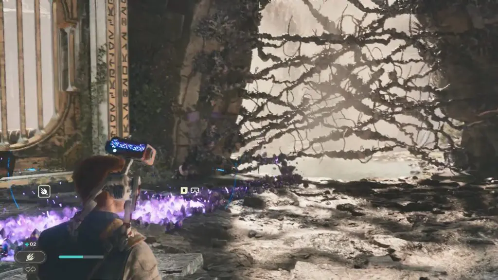 A cut scene will start at this point, during which Cal will tell about the excessive growth of the Koboh Matter. Proceed to the machinery and engage with it to activate the Koboh Grinder enhancement for BD-1. With this upgrade, BD-1 will be able to blast a stream of Koboh Matter anywhere you want it!