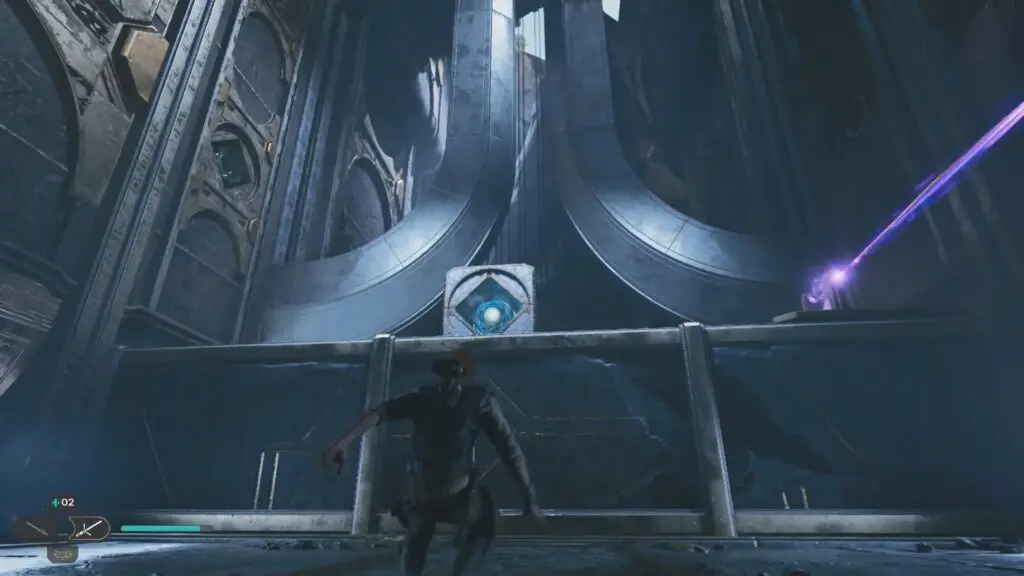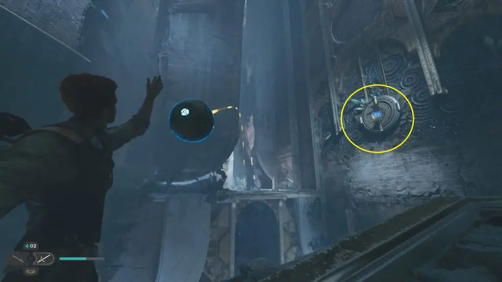 Squeeze through the gap again and pull out the orb from the orb amplifier. Now you need to place the orb on the spot to hold it. When you’re in range of the spot as indicated by the purple line