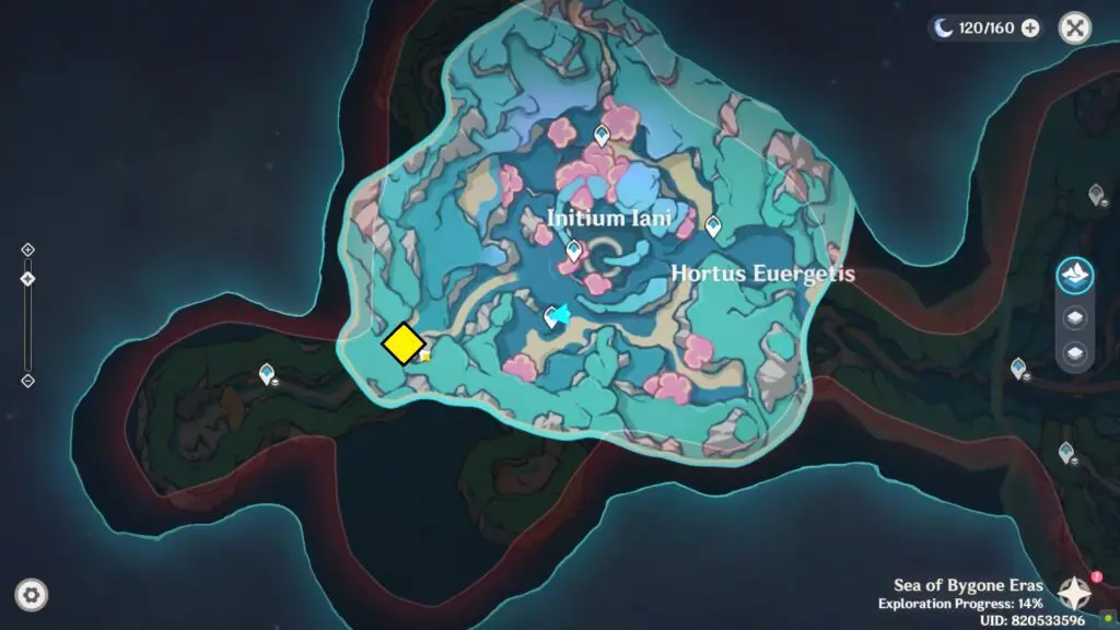 Dies Irae is located in the Caesareum Palace, southwest of Initium Iani as shown in the map below. Swim to the southern Telepory Waypoint in Initium Iani and then proceed into the cave on the left.