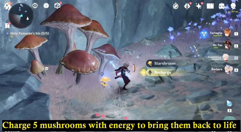 Next, Xamaran will ask for your help in bringing five mushrooms back to life. The game will provide you with the location of a small mushroom location that you need to charge with energy. After charging all the five mushrooms head back to Xamaran.