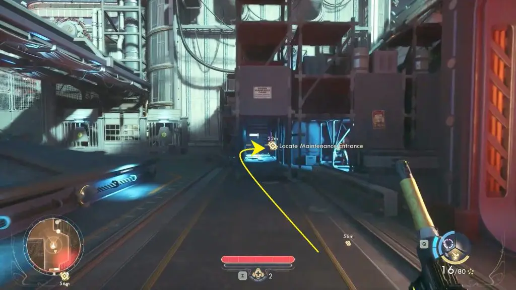 Exit the shack and head straight toward the scaffolding. Open the hatch under the scaffolding to access the maintenance route.