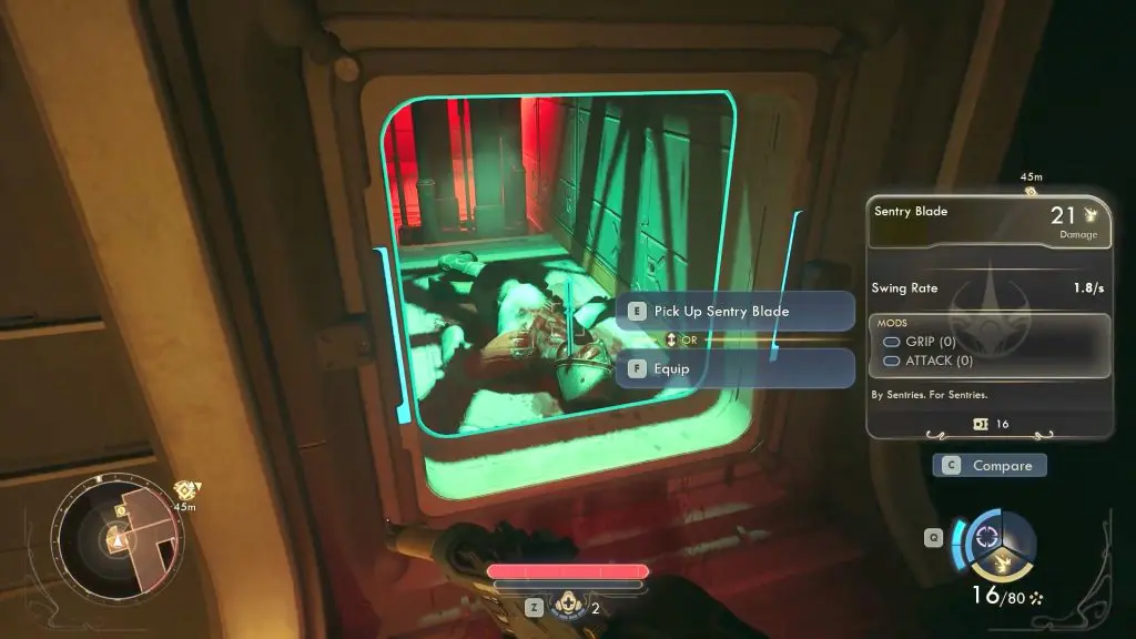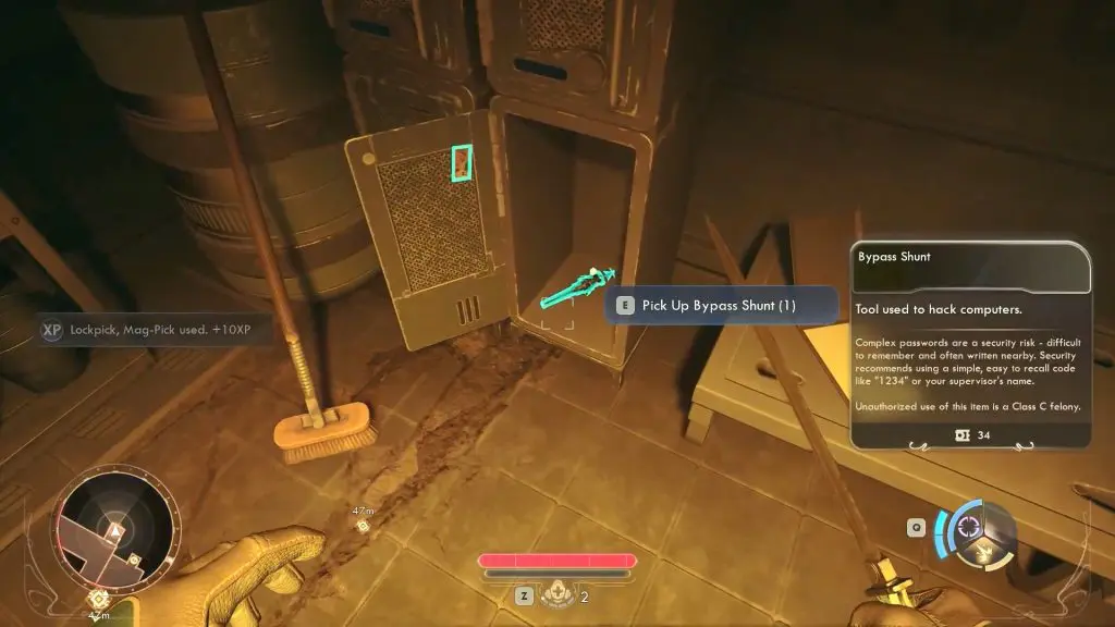 Open it to find a corpse inside and search it to collect the Sentry Blade. In the same room, check the locker and pick up a Bypass Shunt along with a few other helpful items.