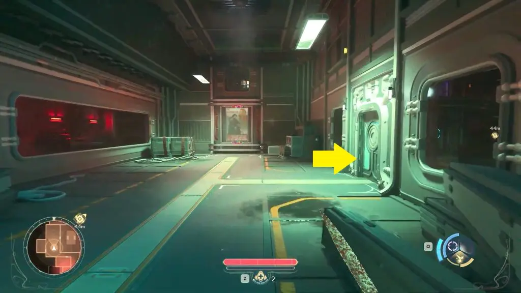 Continue following the path until you reach a hallway. Enter the room on the left side, where you’ll notice a hatch on the right side of the room.