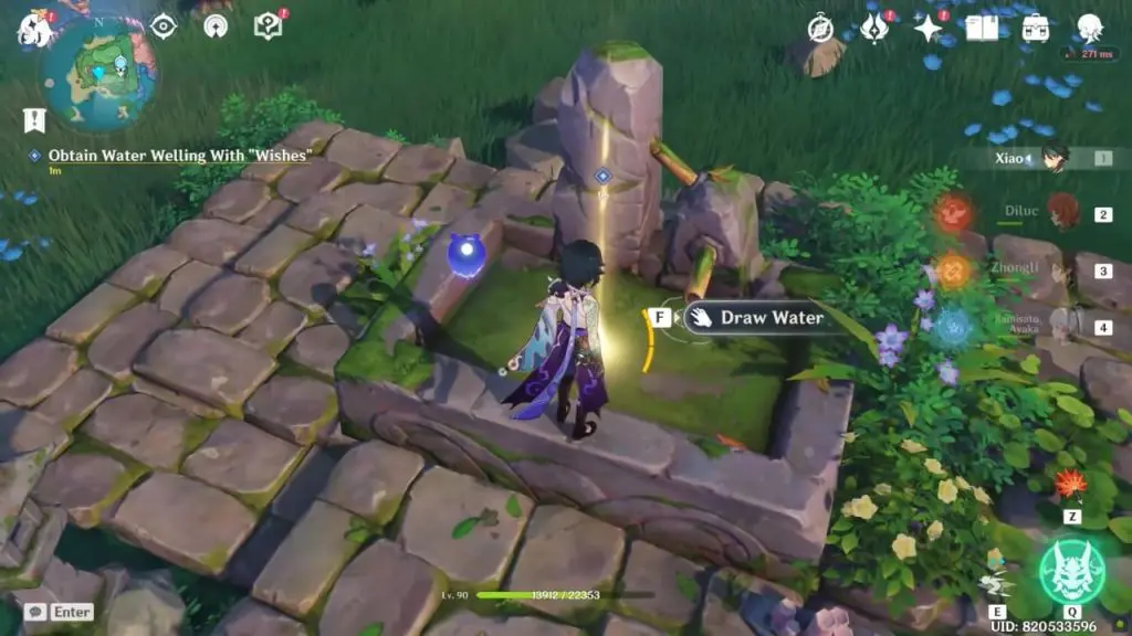At the shrine, you’ll see a sparkle at the little well. Draw the water from the well.