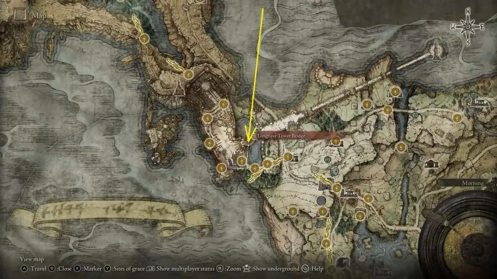 Go to Limgrave Tower Bridge, which is at the location marked in the picture below.