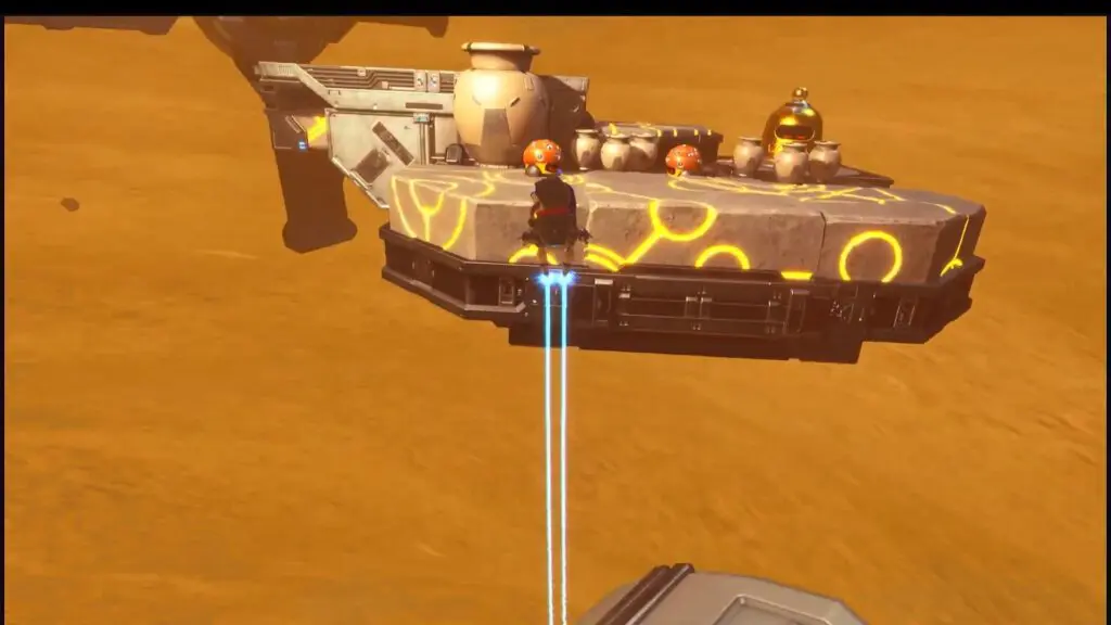 Jump across the dark squares on the ground to reach the platform on the right and find a carpet. Hit the carpet to ride it to the Lost Galaxy entrance.