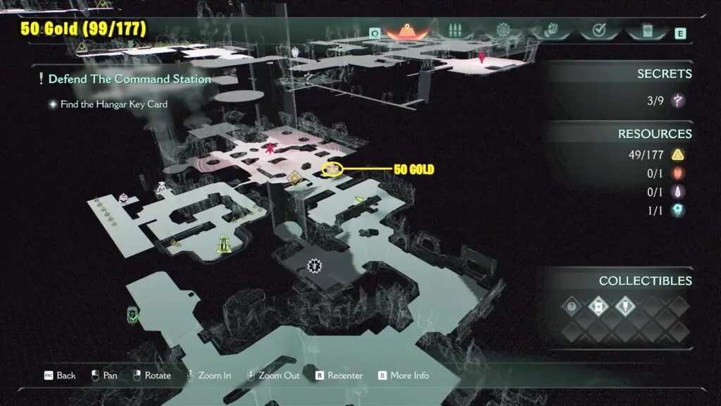 Go to the Control Room, shown on the map below. On the left side, there’s a breakable wall. Go inside to find Gold scattered on the ground.