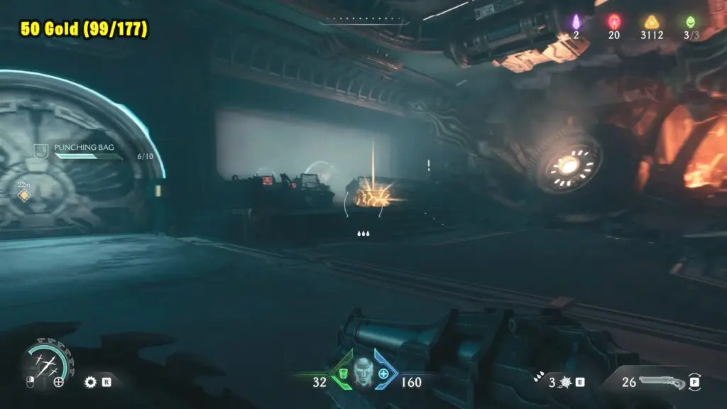 After the first red combat fight, go into the next room and interact with the console. This will open a path in the hallway that leads to the room beside you. Inside, you’ll find 8 Gold on both sides of another console.