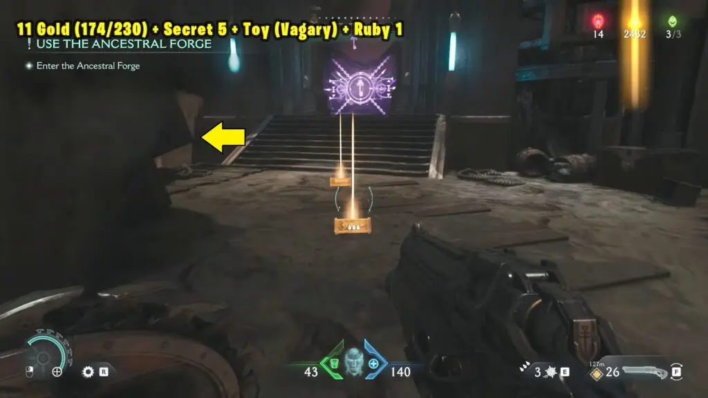 When you go into the Ancestral Forge, you’ll see a Ruby behind a locked iron gate. Look around for a weak wall near the gate.