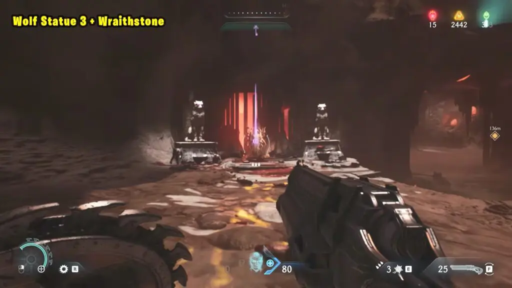 Make sure you’ve already broken the other two Wolf Statues. Once all three are destroyed, the barrier around the Wraithstone will disappear.