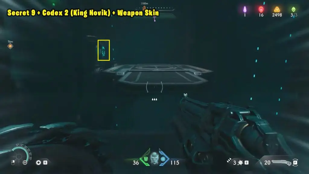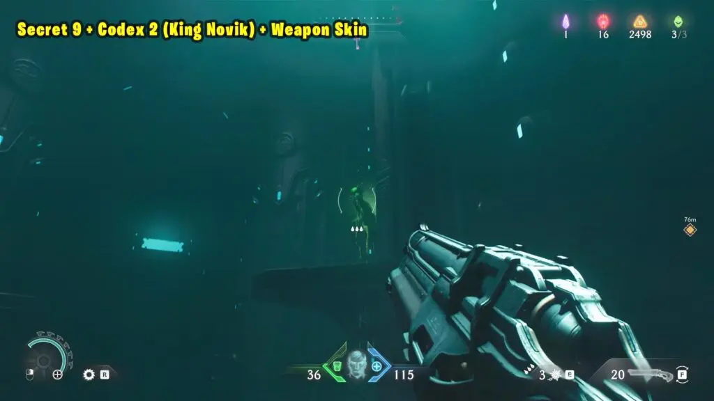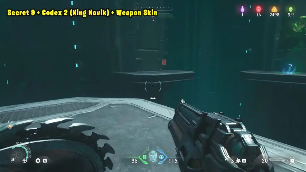 Jump across to the platform with the green corpse. Codex 2 (King Novik) + Weapon Skin will be in front of you on two different platforms.