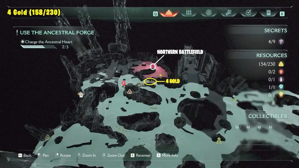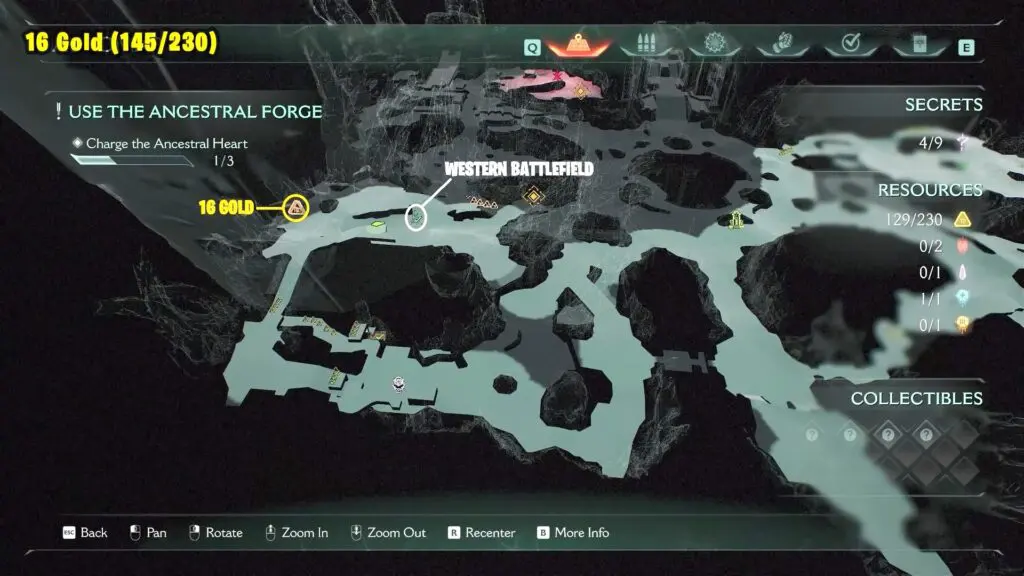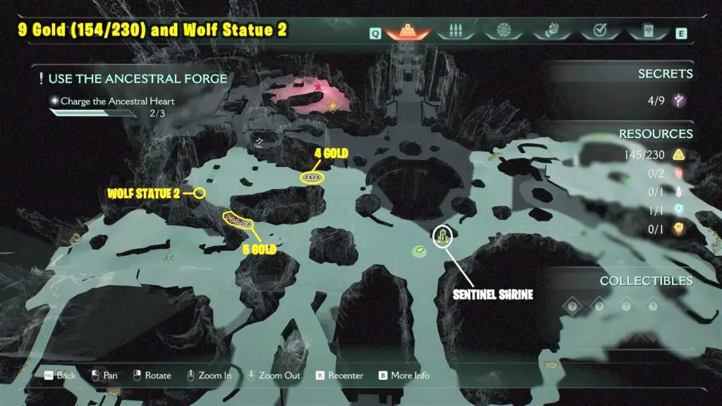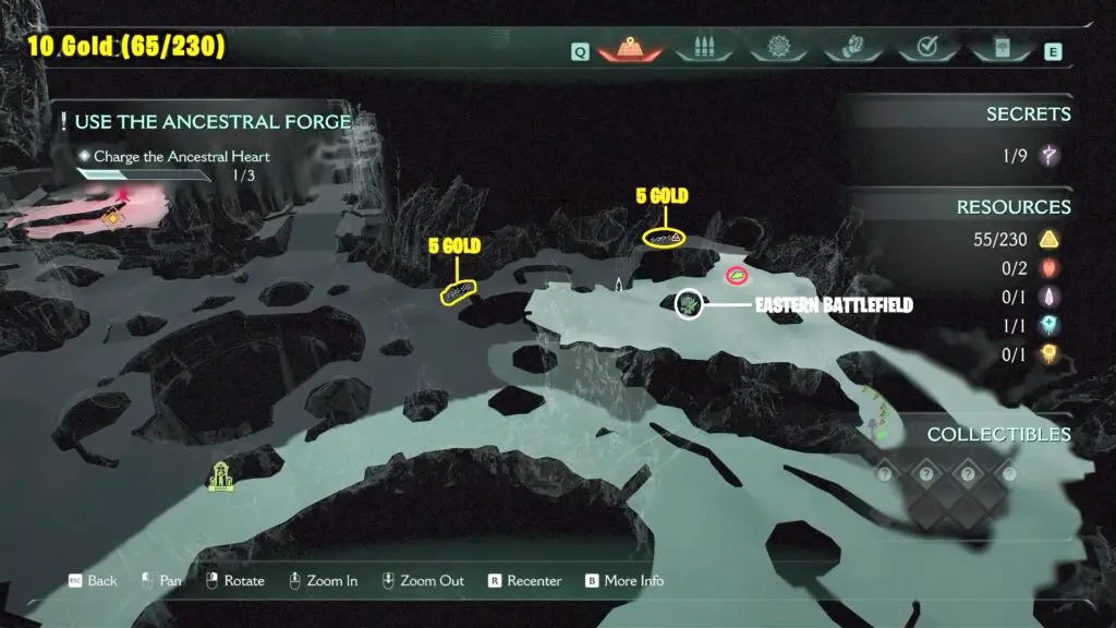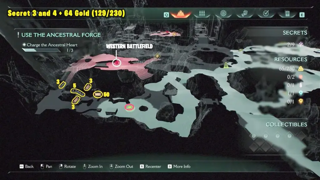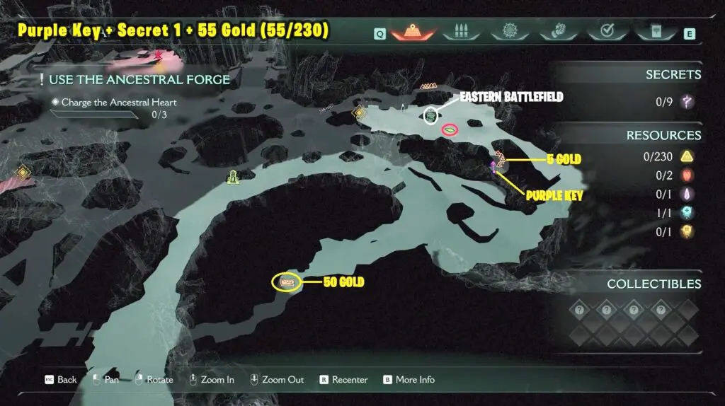 After you charge the Ancestral Heart for the third time, proceed to your right and jump to see 3 Gold in front of a Secret Key Gate.