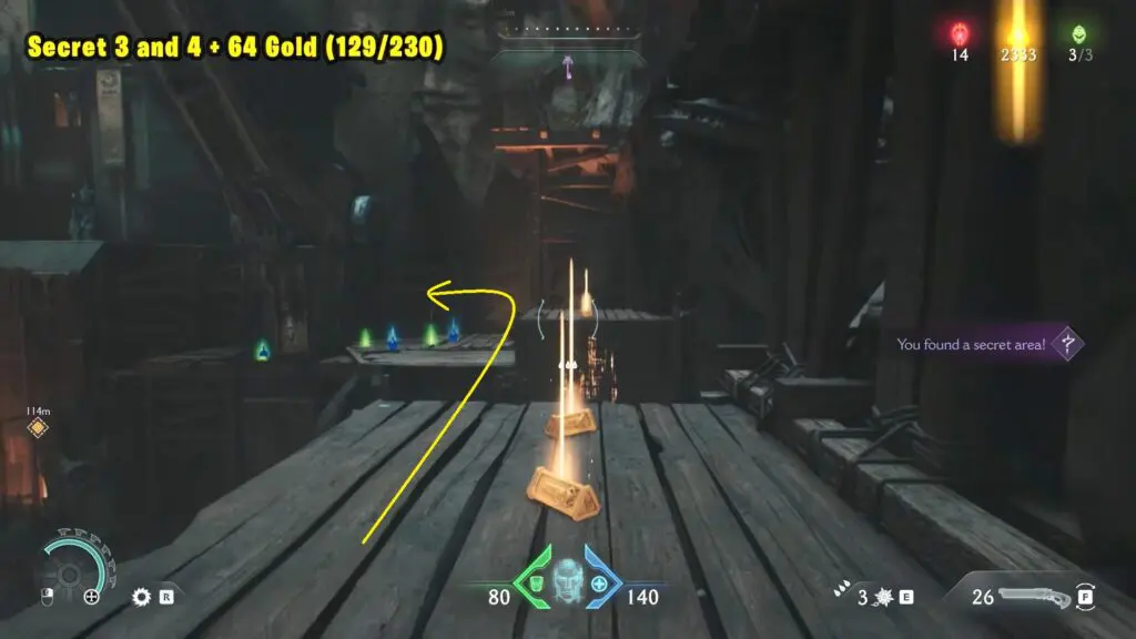 Head to the northwestern part of the map, as shown below. Drop down from the ledge to find Gold and a Codex Entry on a wooden platform.