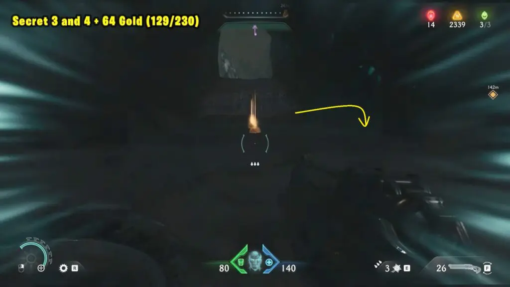 Keep going in the same area until you reach the spot marked on the map. Look up and you’ll see an orange chain. Break it to lower the platform floating above.