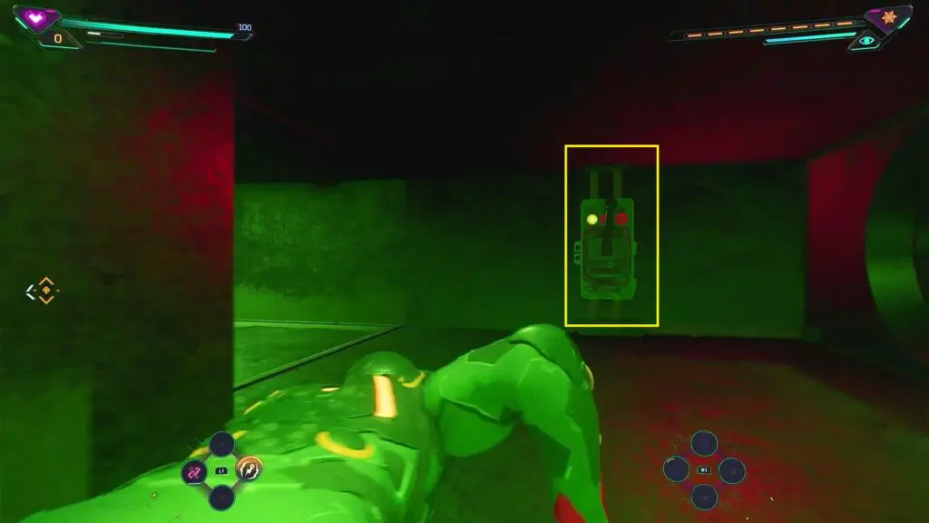 Go back to the vent entrance and this time take the path on the left side. Crawl through the vent safely avoiding the lasers. Finally, you will reach the Prowler Stash at the end of the vent as shown in the picture below.