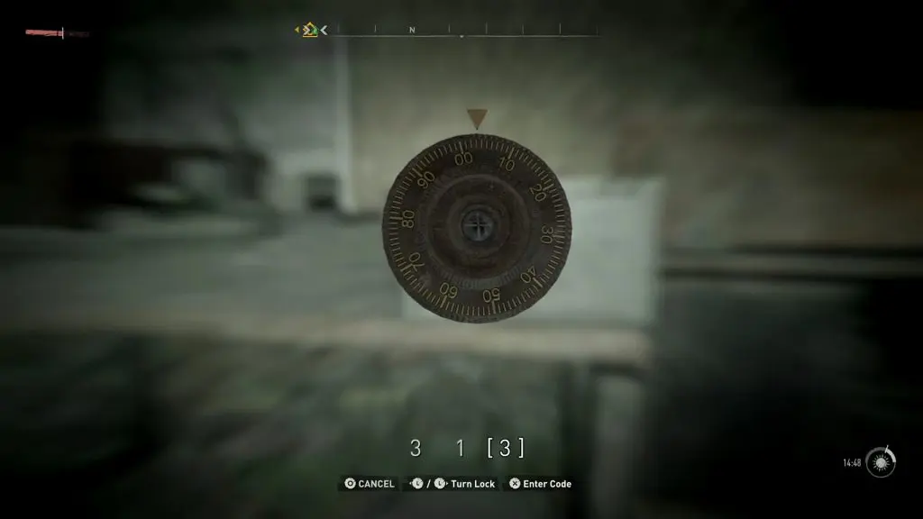 Now, jump through the hole on the wall to reach the safe. Enter the Safe Code (3-1-3) to unlock the safe. You will find an Inhibitor inside the safe.