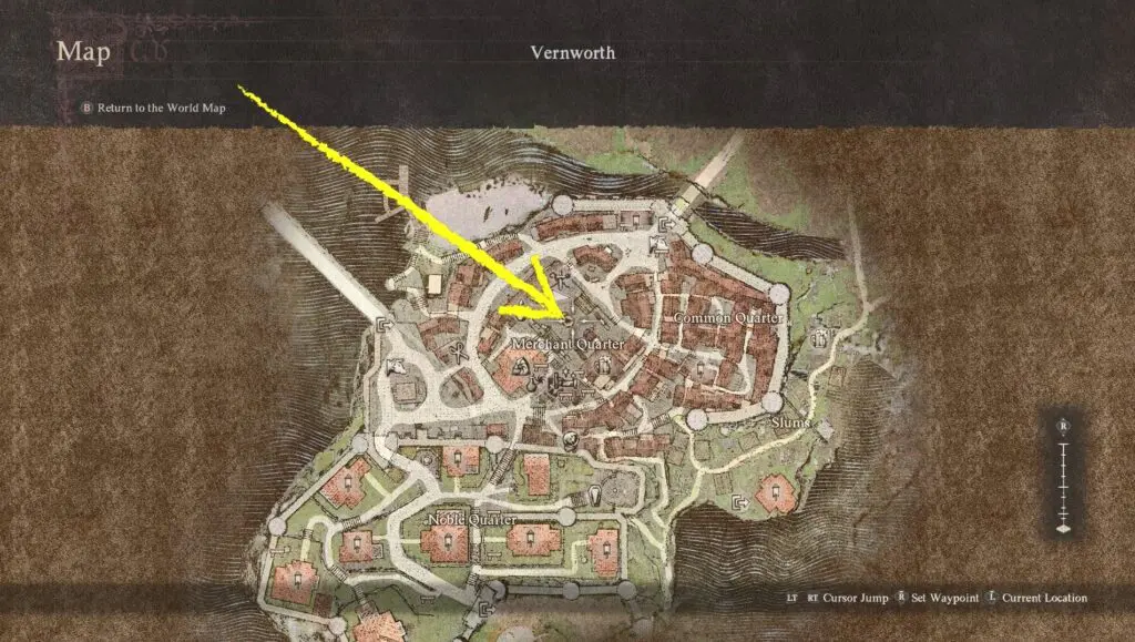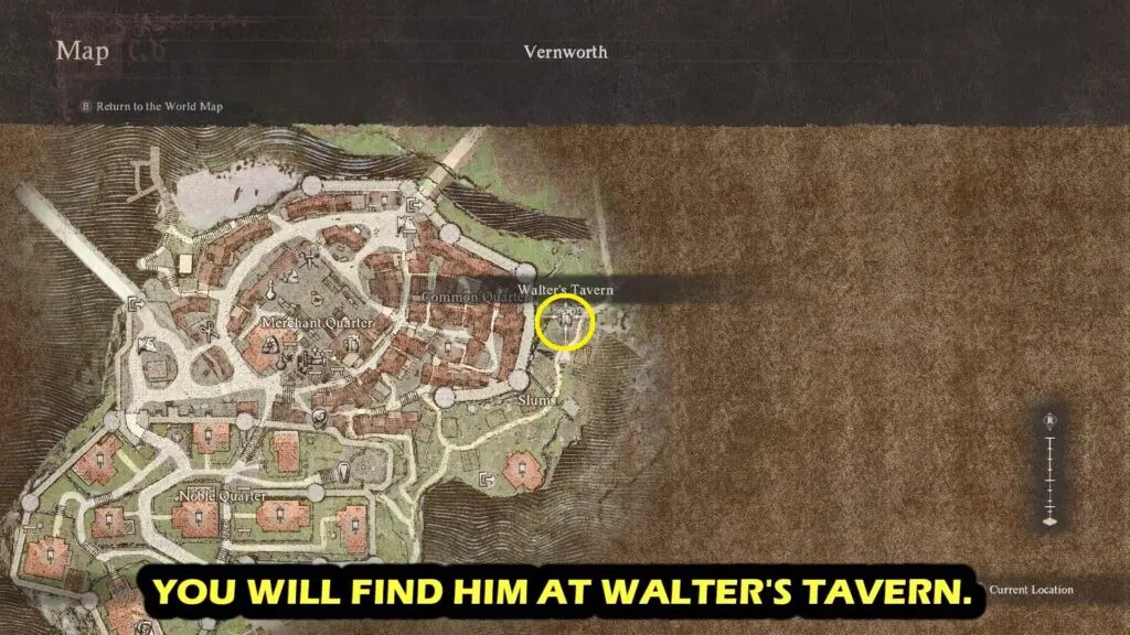 Visit the Merchant Quarter in Vernworth. There’s a beggar near a fountain shaped like a headless dragon. Speak with the beggar until another NPC approaches you and informs you that the beggar appears to make a lot of money. At this moment, the quest will begin.