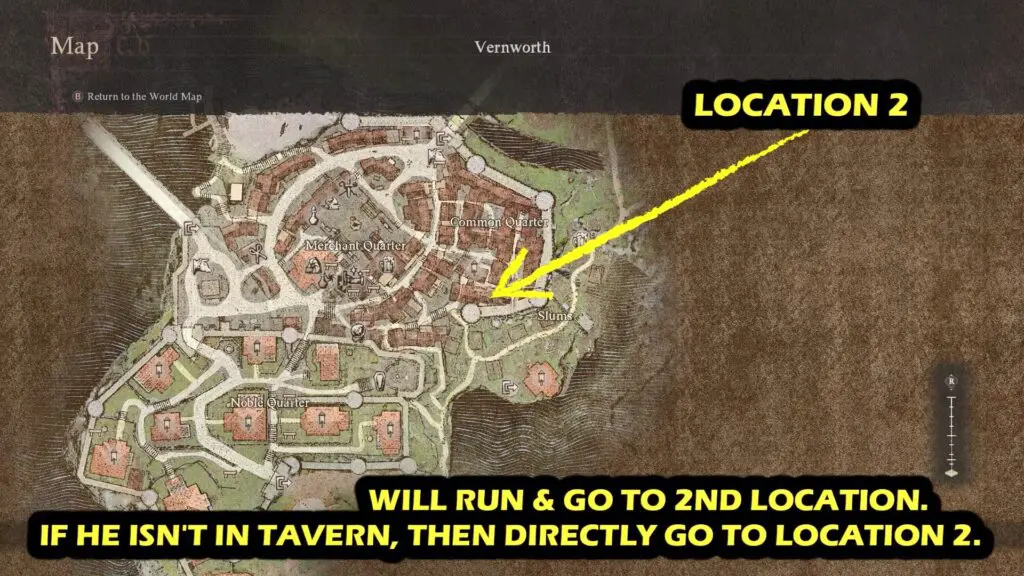 Follow the beggar to Waller’s Tavern in the slums, then follow him to the next destination. If you can’t find it at Location 1, go directly to Location 2.