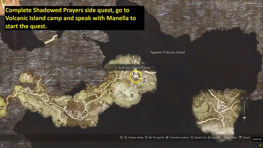 Head to Volcanic Island Camp and speak with an NPC Menella to start the quest. You can find her in the camp or hot springs.