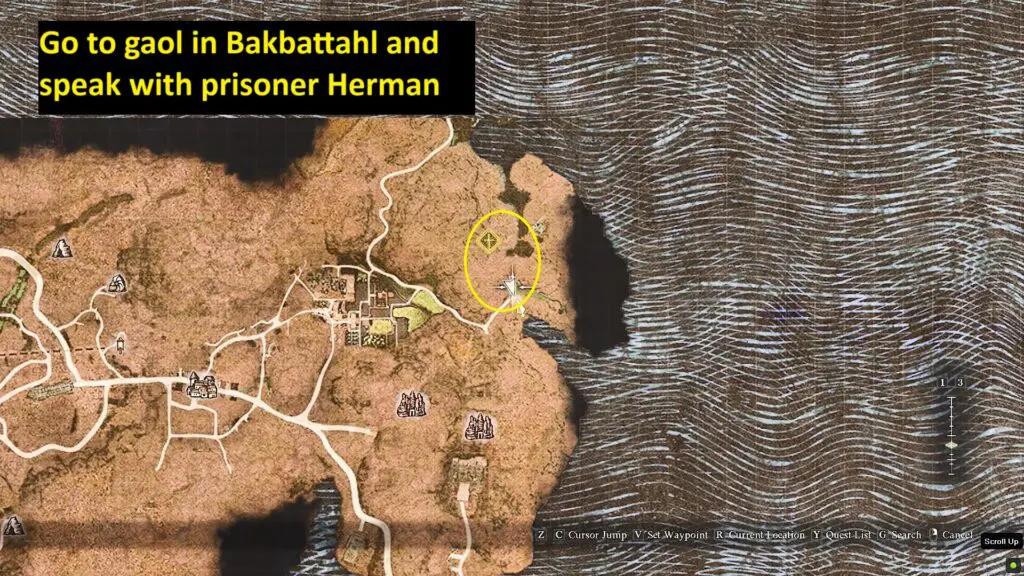 Head back to Bakbattahl, then go to the gaol and enter the gaol. Refer to the location below.