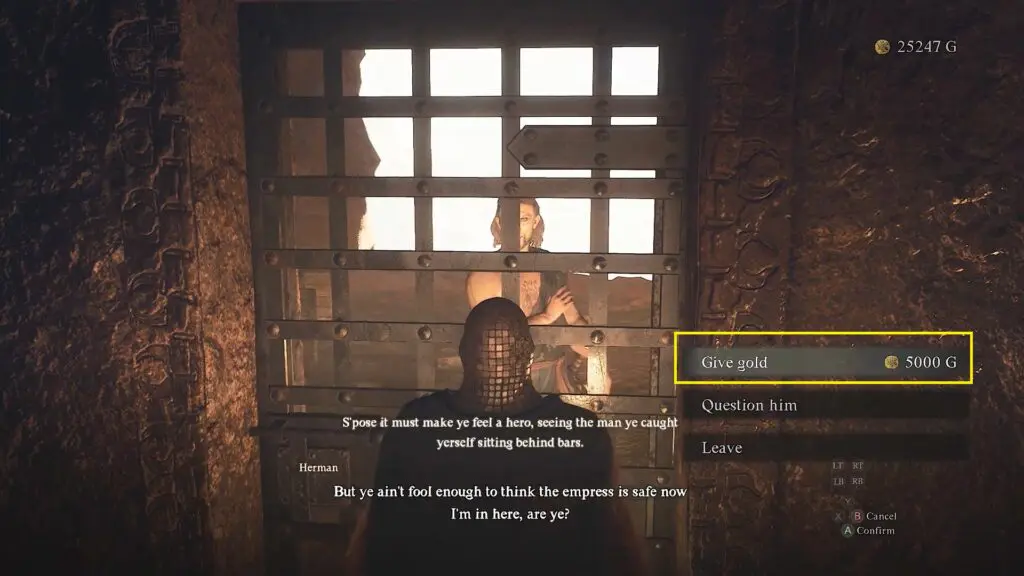 Speak with the prisoner named Herman. Pay him 5000 G and he reveals that he was instructed by the Coral Snakes.