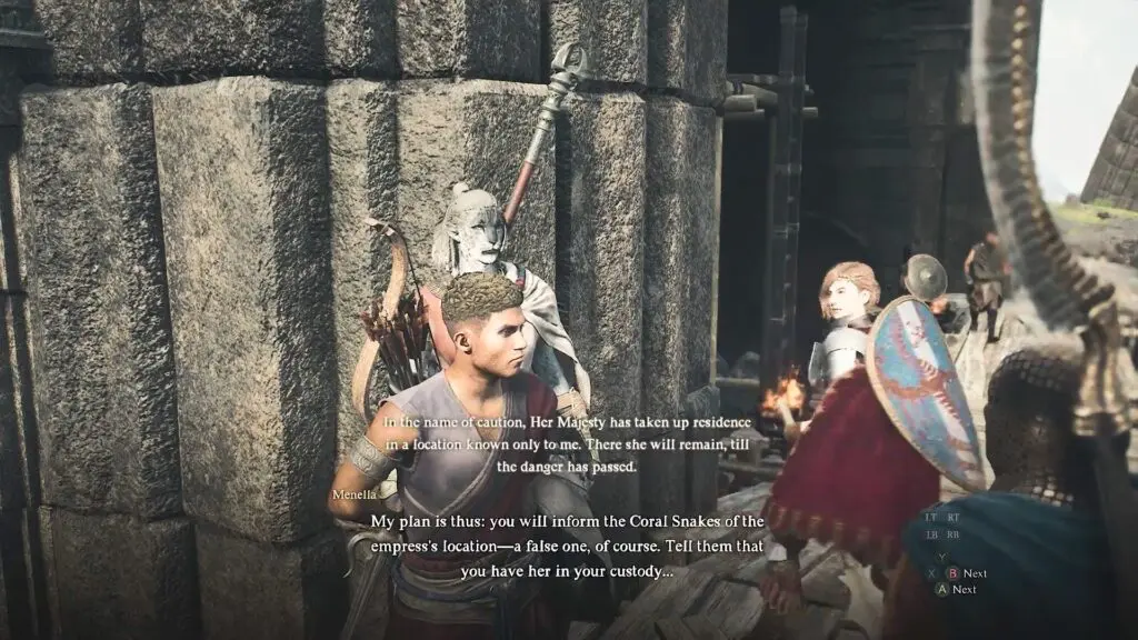 After speaking she will leave. Head to the newly marked spot on the map and enter the building. Here you should meet NPC Menella and NPC Nadinia. You can either support the empress’s proposal or oppose the empress’s proposal.