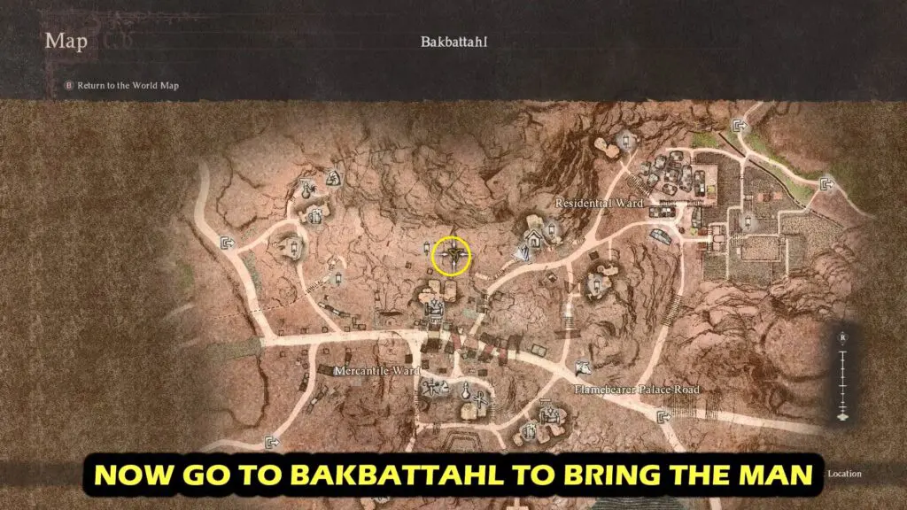 Just place a Portcrystal near Sphinx. Head north of the town to Bakbattahl to reach the “Mural Byway” area. Here, you’ll find a lone and old NPC (named Maurits) standing in front of the mural. Pick him up then use a Ferrytone to teleport back to the Portcrystal at the Sphinx.