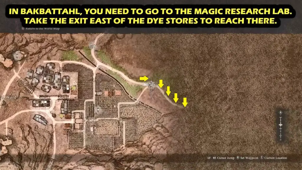 Once you reach Battahl, proceed to the Forbidden Magick Research Lab. Refer to the location on the map below.