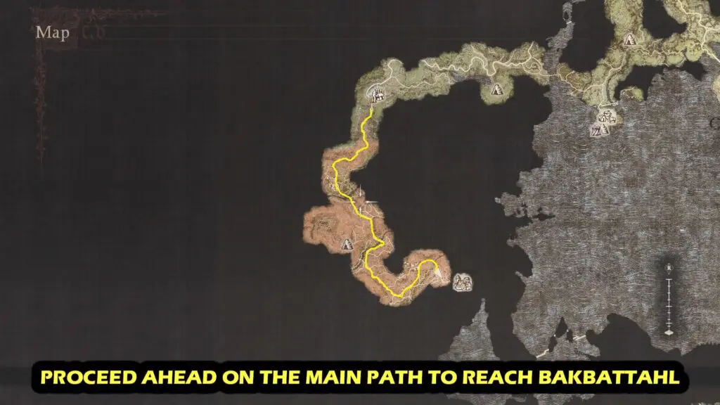 Proceed along the main pathways to the quest marker. Defeat the enemies along the main path to reach the entrance of Bakbattahl City. Follow the main path as shown in image below.