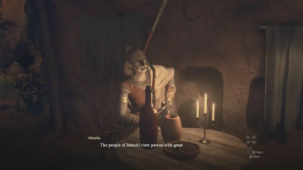 Enter the “Rockmouse’s Burrow” inn, located outside the city. Talk to Menella inside the inn to get a Battahl Residence Permit. This will end the quest.