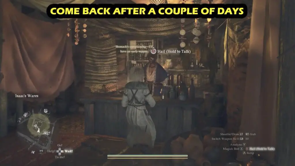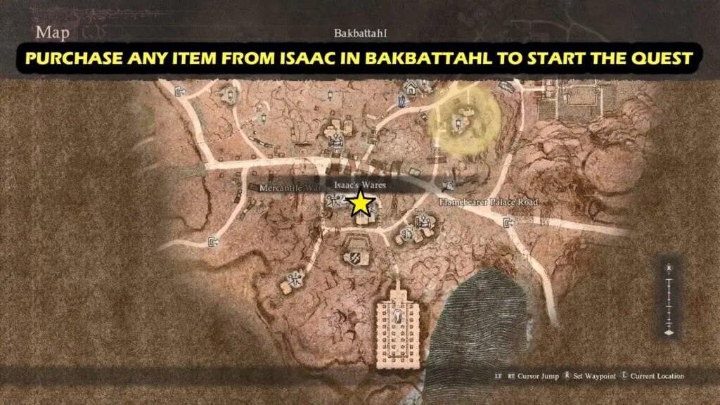 To start this quest, go to Isaac’s Wares in Bakbattahl and purchase an item like Ferrystone.